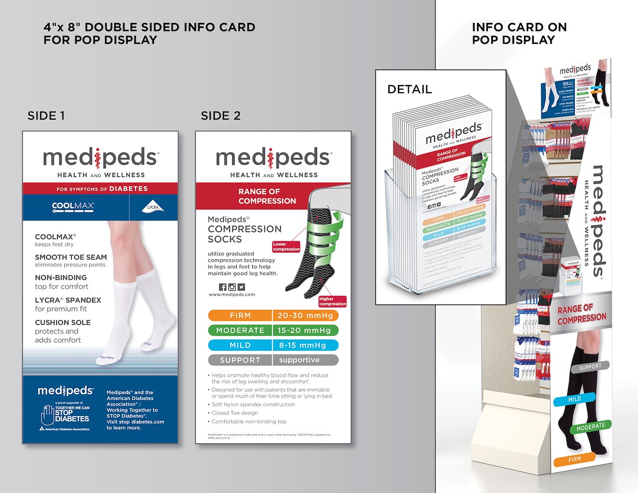 Double sided product info card for POP display.